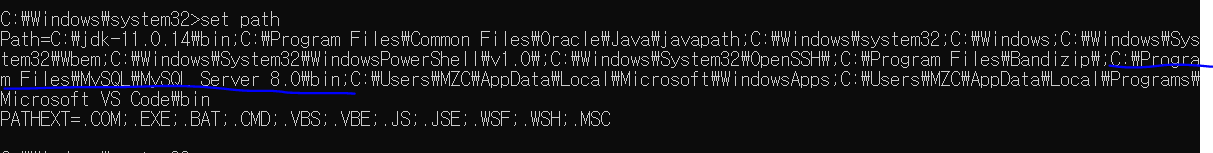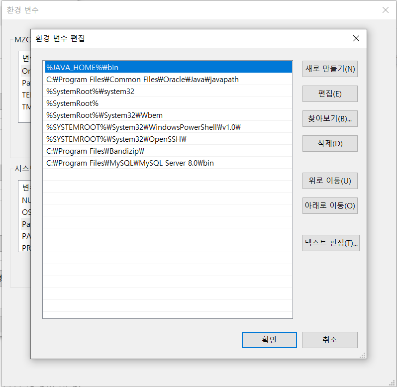 어디서나 mysql을 입력하면 mysql이 실행될 수 있도록 MySQL의 실행파일이 있는 경로를 Path에 추가하자!