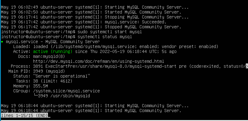 $sudo systemctl start mysql