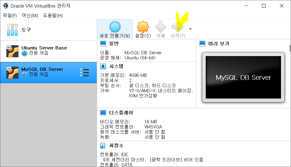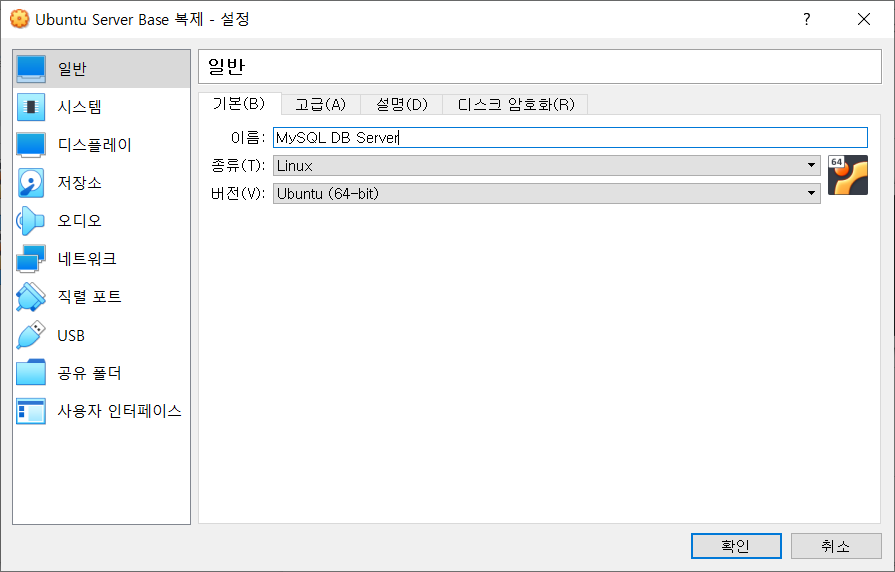복제한 서버 설정 들어가서 이름 MySQL DB Server로 바꿔준다.