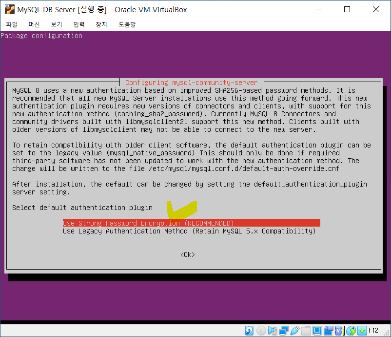 user strong password encryption(recommended) 선택