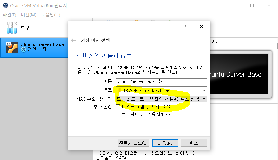 이렇게 하면 아주 똑같이 복제가 된다. 이럴 경우 맥어드레스가 같다는 문제가 생김