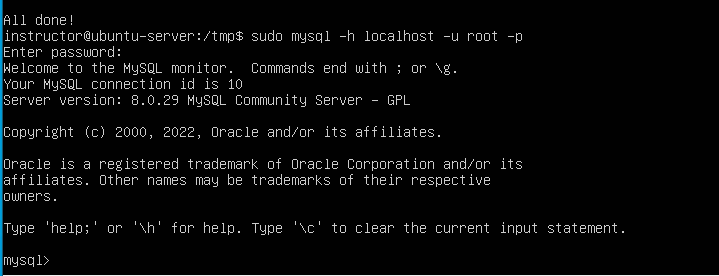 $sudo mysql -h localhost -u root -p