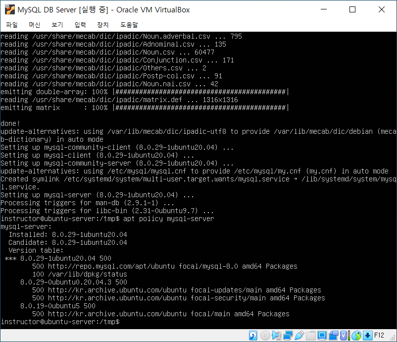명령어로 지우고 다시 처음부터 깔기 -> $sudo apt install mysql-server 여기서부터 시작.