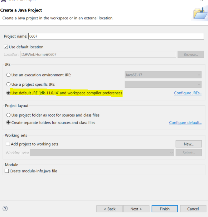 새 워크스페이스 만들어주고 이클립스 새 프로젝트 만들어주기
